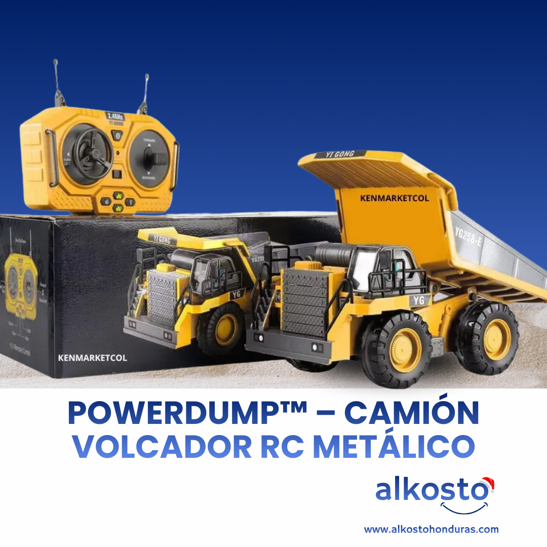 El PowerDump™ es un camión volquete a control remoto con cama metálica funcional, luces LED, sonidos realistas y batería recargable. Su estructura resistente y su diseño detallado lo convierten en una pieza perfecta para quienes disfrutan de los vehículos RC, la construcción, los modelos premium o el entretenimiento en general.